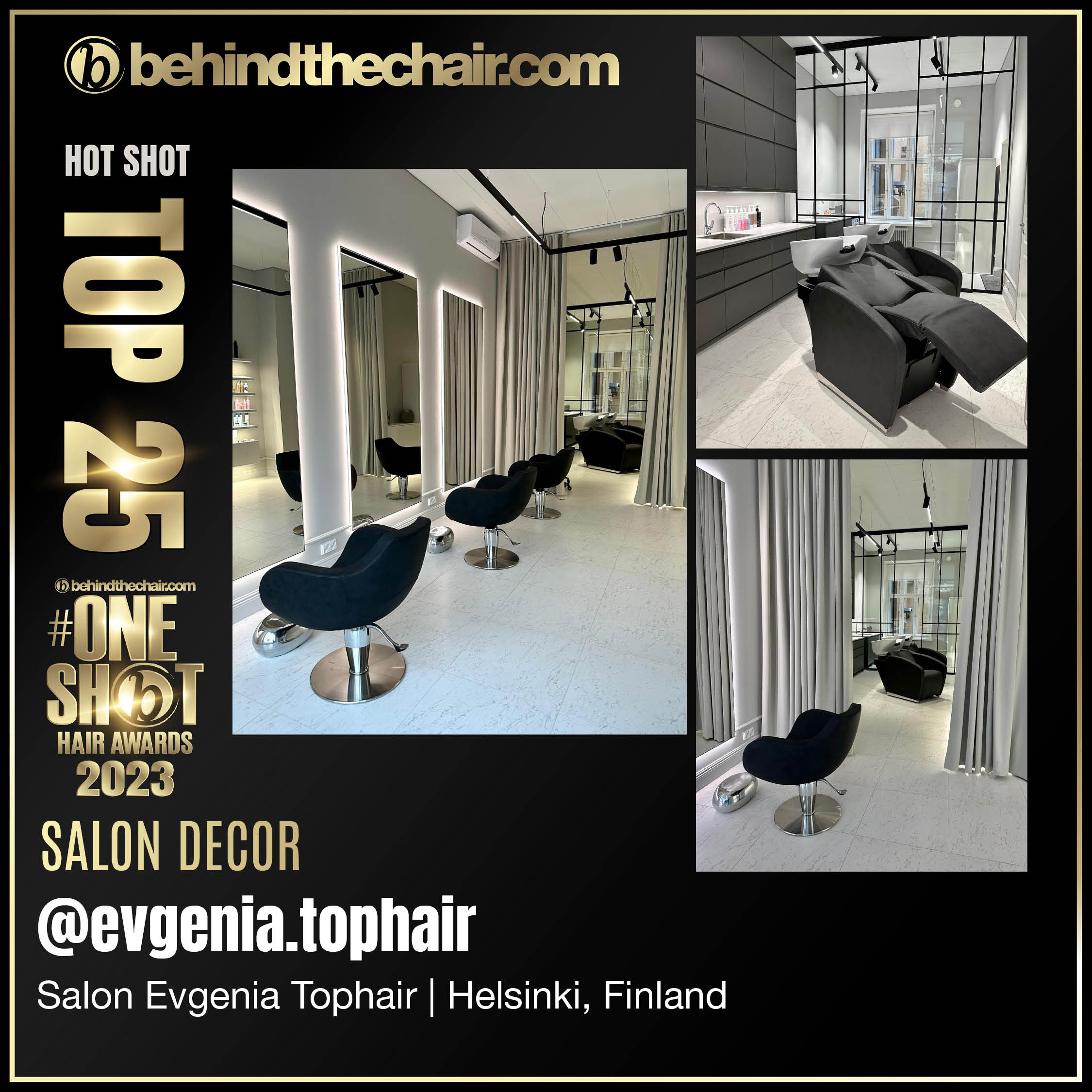 Salon Evgenia Tophair is an exceptional hair salon in Finland that is recognized globally by @behindthechair.com as one of the Top25 Best Salons in the World. Evgeniia and her Salon Evgenia Tophair was awarded in August 2023 in The BTC SHOW 2023 Austin, Texas US.